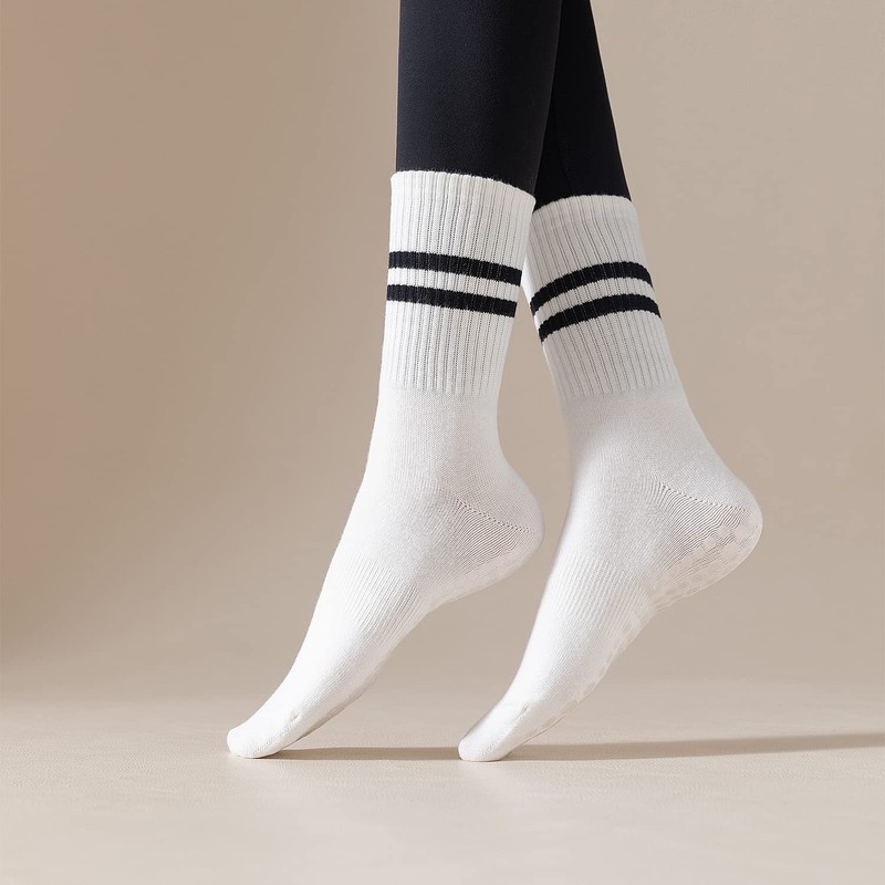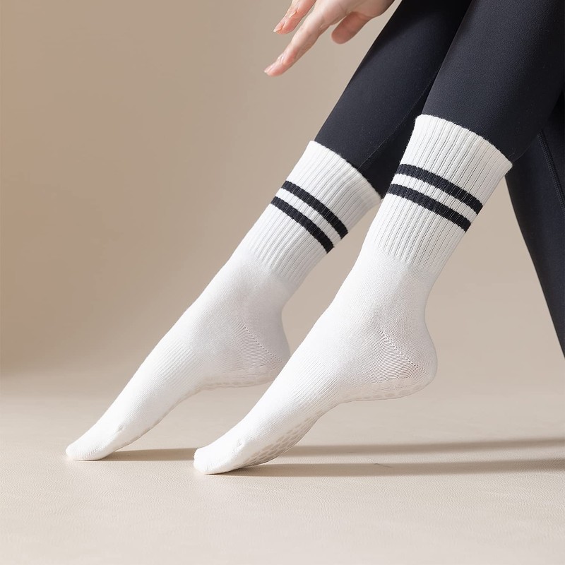 - [Multi Purpose]: The stripe grips cotton socks are perfect for wearing on slippery surfaces such as hardwood floors or tile, and provide great comfort without sacrificing performance. Besides being the perfect choice for boosting yoga performance, our gripper socks are also suitable for Pilates, Barre, Ballet, Gym, Dance and all other Barefoot Activities.