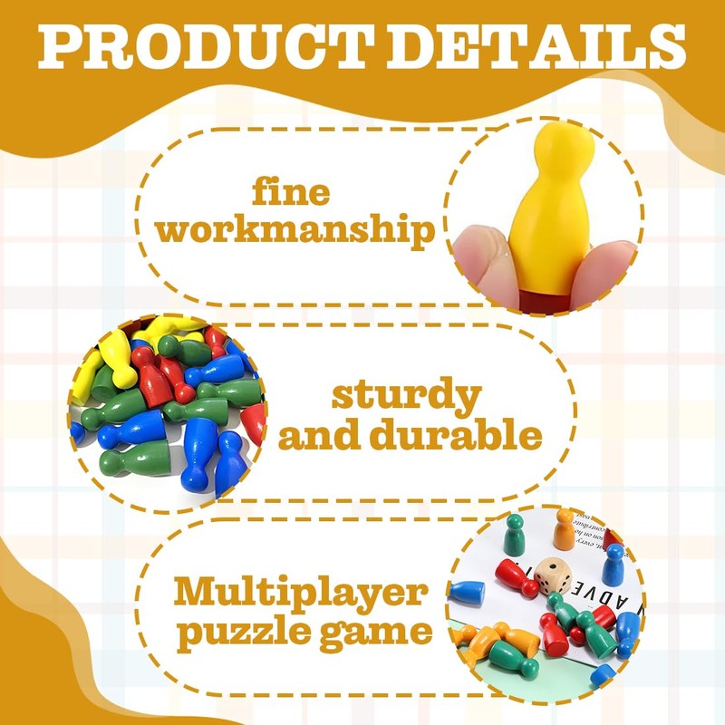 - Board Game Figures Set The package includes 96 board game pieces and 6 dice. A wonderful item for games and setups.