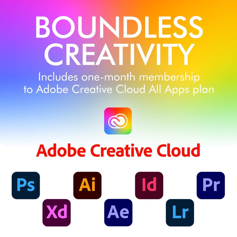 - Includes 1-month complimentary membership to Adobe Creative Cloud All Apps Plan. Must redeem by January 31, 2020