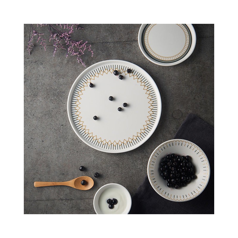 - Components: 4 bowls, 4 bowls, 4 side dishes, 1 round plate (small), 1 round plate (large), 1 square plate (small), 1 square plate (large), 1 rectangular plate, 2 sauce bowls, 1 pasta bowl