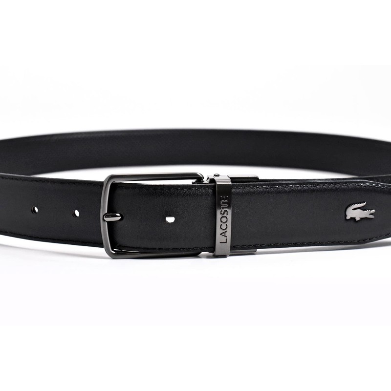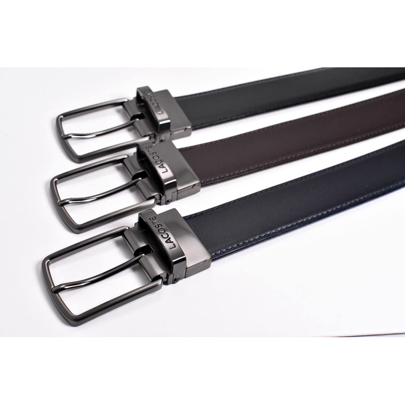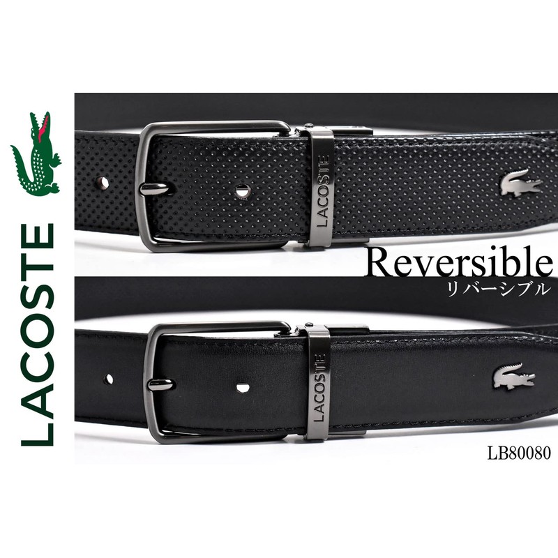 Lacoste LB80090 Men's Cow Leather Reversible Business Belt, Black