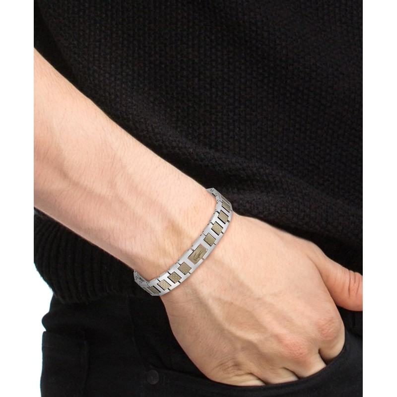 - HIGH QUALITY STAINLESS STEEL WITH TWO TONE FINISH: Made of high quality stainless steel, the Metropolis bracelet features a stylish two-tone design with the inner small piqué links plated in khaki green, creating a refined contrast.
