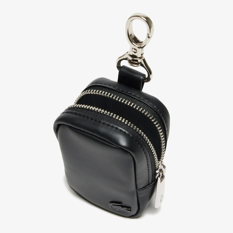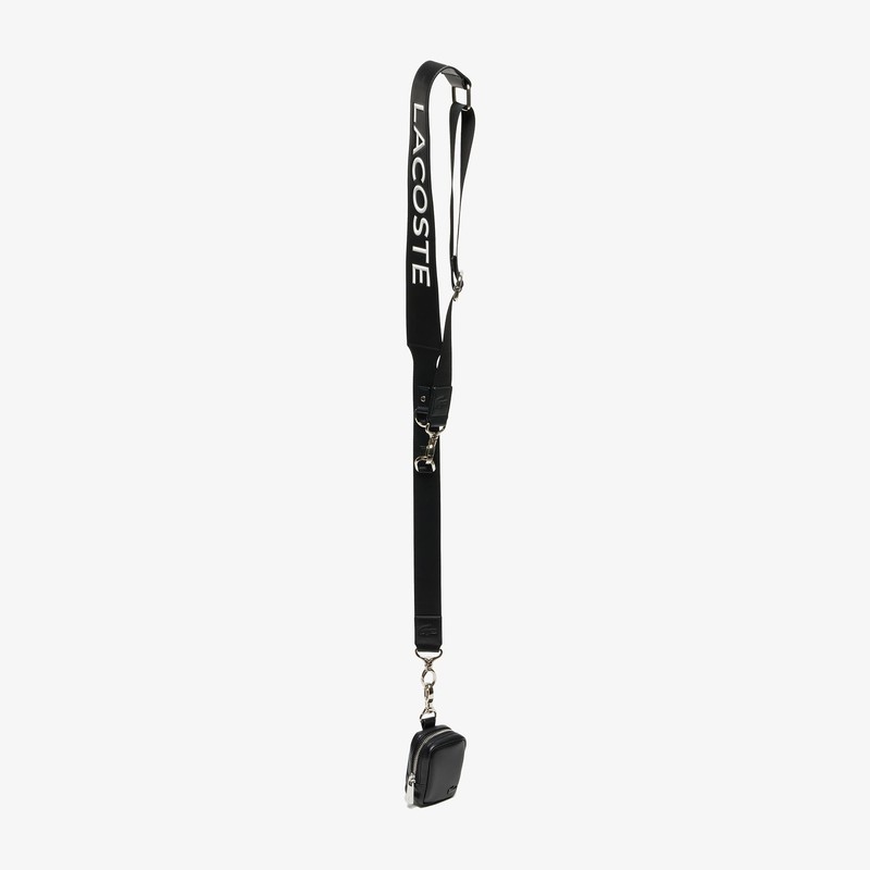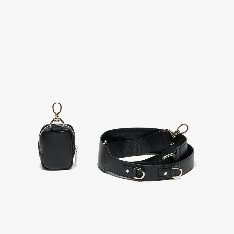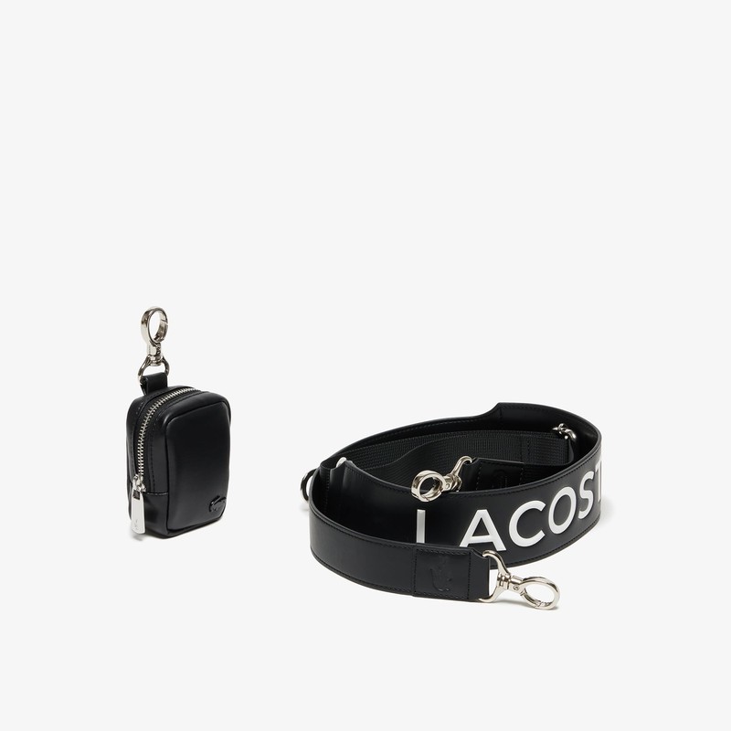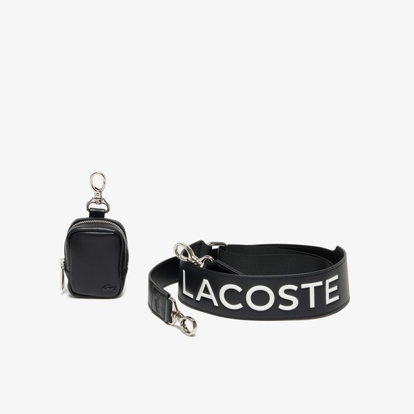 Lacoste NF1410KP Leather Earphone Shoulder Pouch, Black, Black