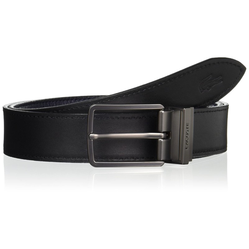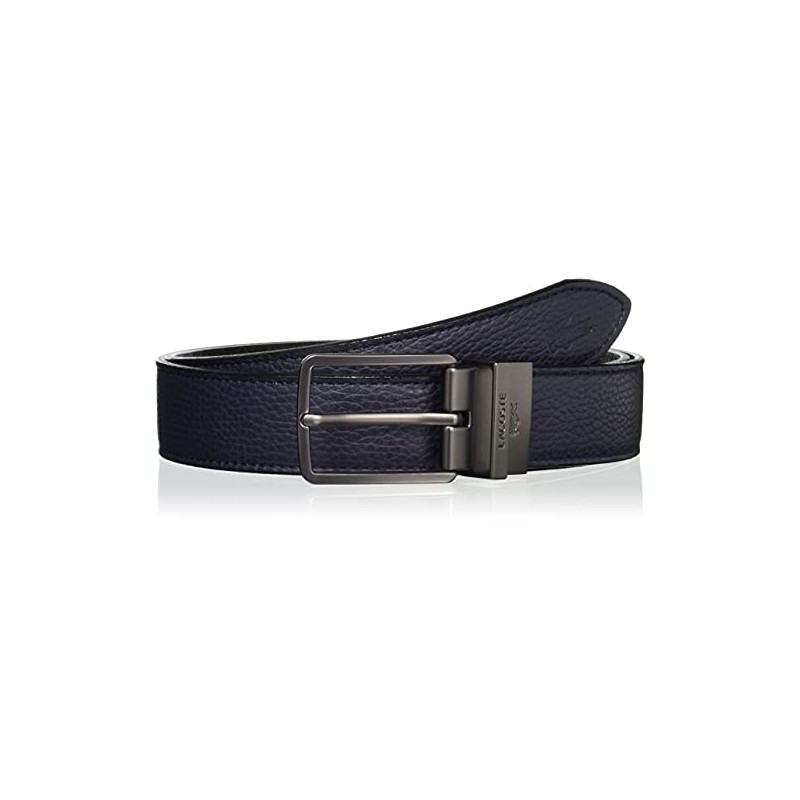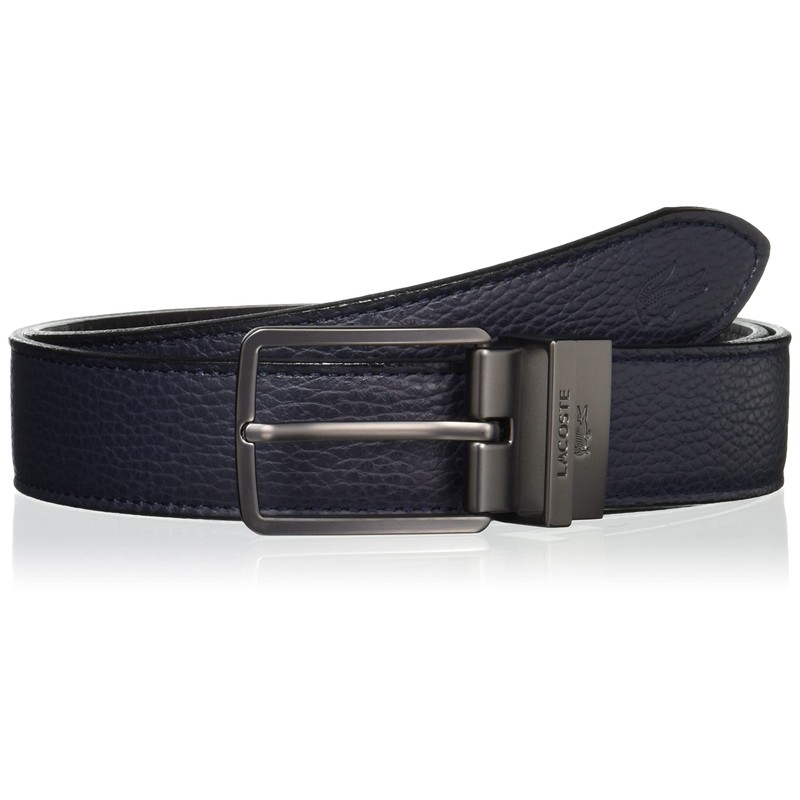 Lacoste PLM0626 Men's Reversible Gun Metal Buckle Leather Belt, navy