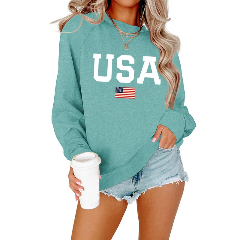 - Fashion Style: USA long sleeve sweatshirts Women fourth of july shirts for women usa hoodie women american flag sweatshirt women casual loose patriotic USA flag sweater can be worn with shorts, skirts, leggings, jeans, yoga pants reflect cute, casual and trendy style.