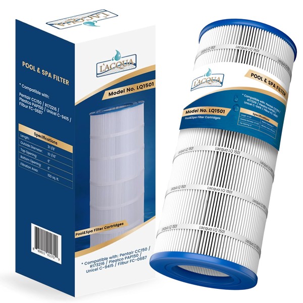 LACQUA Filter Replacement LQ1501 150 SqF for Pentair CC150/CCRP150, Posi Clear PXCRP150, R173216, Pleatco PAP150, PP-C4-M, C4-M, Unicel C-9415, Filbur FC-0687