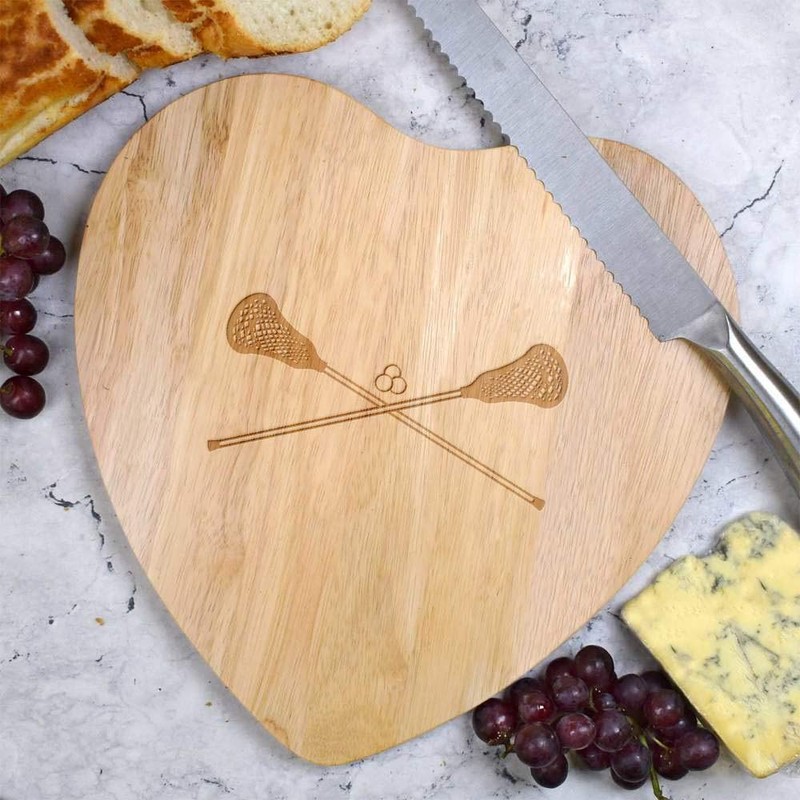 'Lacrosse Sticks' Wooden Heart Shaped Chopping/Cutting Board (WB00052294)
