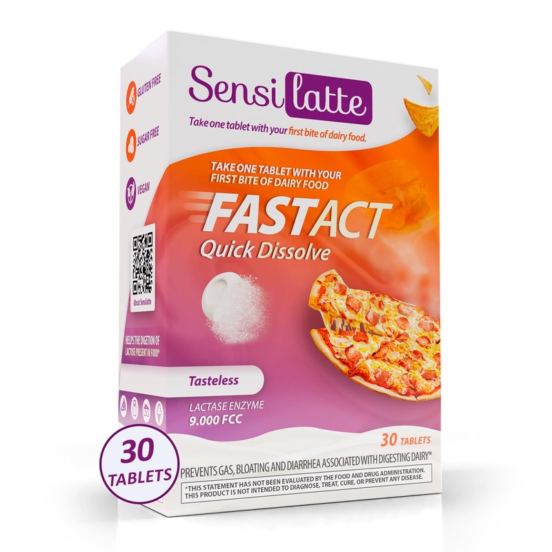 Lactase Enzyme Supplement - Quick Results for Dairy Ingestion, Quick Dissolve in Your Mouth - Vegan, Sugar Free, Gluten Free, Lactase Enzyme 9.000 fcc - Tasteless, 30 Tablets - SENSILATTE
