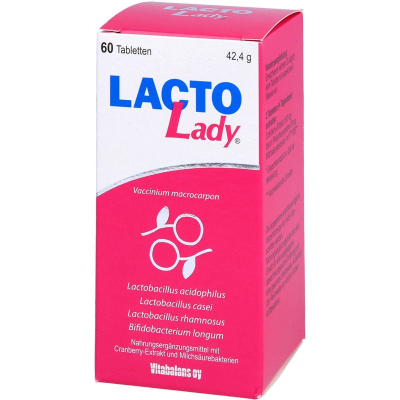 Cranberry extract (Vaccinium macrocarpon), F llstoff (cellulose and dicalcium phosphate), milk urebacteria (maltodextrin, Lactobacillus acidophilus, Lactobacillus casei, Lactobacillus rhamnosus, Bifidobacterium longum), solidifiers (cross-linked carboxymehtyl cellulose), Release agent (silicon dioxide), coating agent (magnesium salts of food fats).