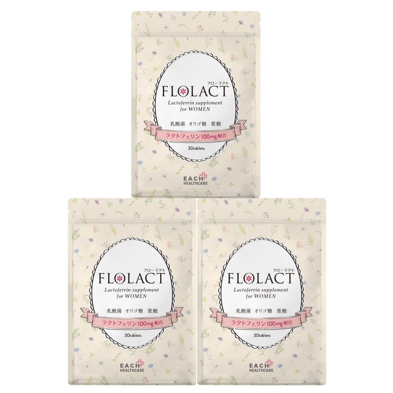 ラクトフェリン サプリ 葉酸 配合 妊活 妊娠 にFLOLACT(フローラクト) 子宮内フローラ に 無添加 凝縮( 葉酸 乳酸菌 オリゴ糖 他)30日分×3個