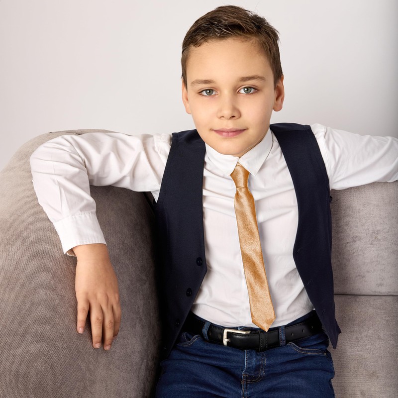 - Child-friendly design: easy to wear shiny tie specially designed for children. Independent fitting - simply adjust the size to the neck circumference with a Velcro fastener.