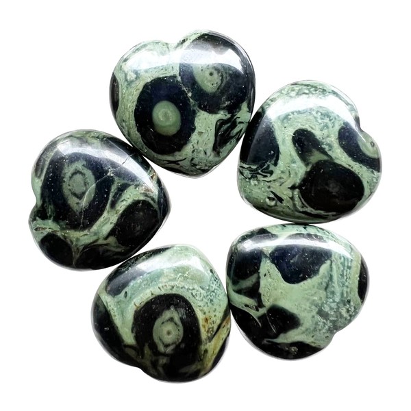 Ladeukoi 5Pcs Kambaba Jasper Crystal Love Heart Stone, Polished Palm Pocket Stones Healing Therapy Chakra Balancing 1 Inch(25mm)