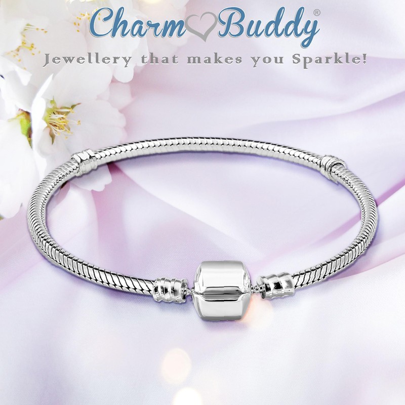 1 x Genuine Silver Plated Charm Bracelet with Clip & Snap Clasp