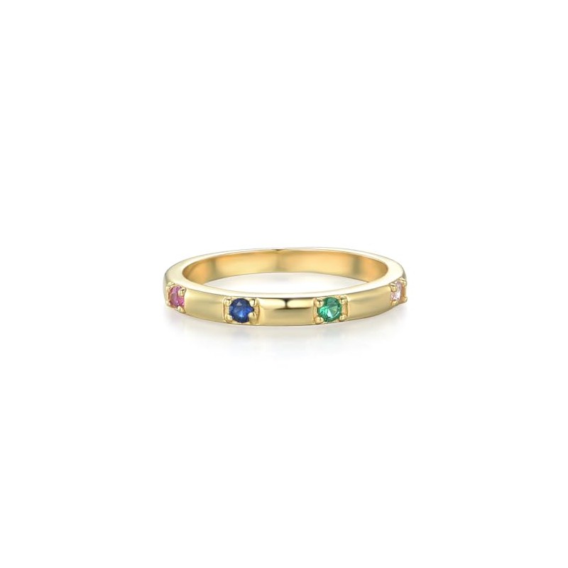 Ladies 9 Carat Gold on Sterling 925 Solid Silver Multi Gem Eternity Ring K L M N O P Q R S T U (M)