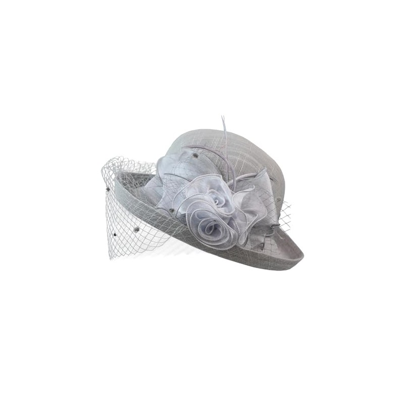 Ladies British Net Veil Fascinators Formal Hat Elagant Flower Decorated Mesh Wedding Sun Hat for Women Grey