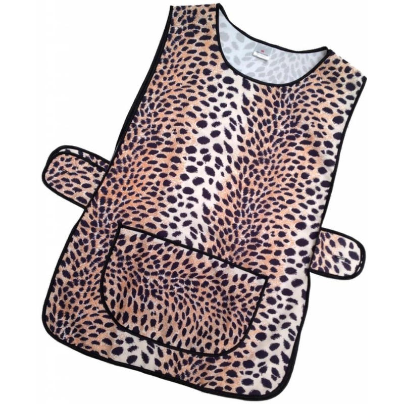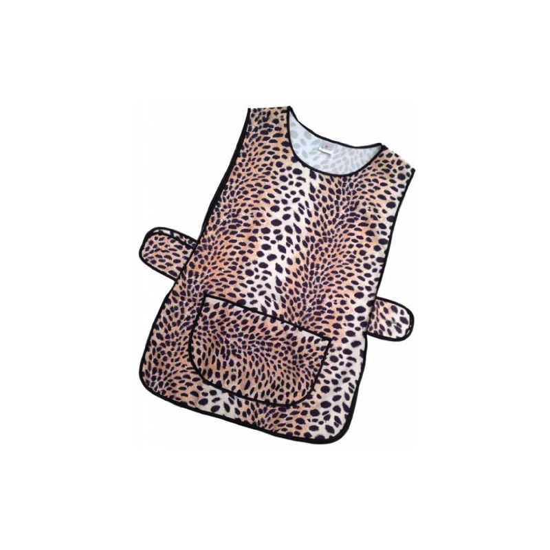 Ladies Floral Home Work Tabard Apron with Single Large Front Pocket, White Piping and Side Fastening Button Tabs