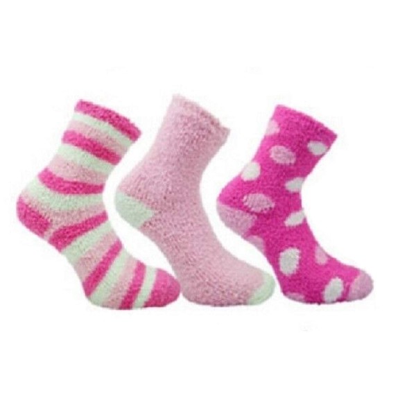 Ladies Fluffy Stripes & Polka Dot Design Co-Zee Thermal Socks (3 Pair Multi Pack)