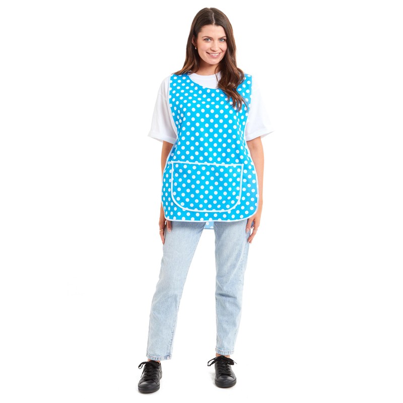 Ladies Polka Dot Design With Piping Tabard Apron Overalls Front Pocket Stylish Tabards for Women Casual Aprons for Women to Use in Home Kitchen Restaurants Coffee Shops UK Made (Aqua, L)