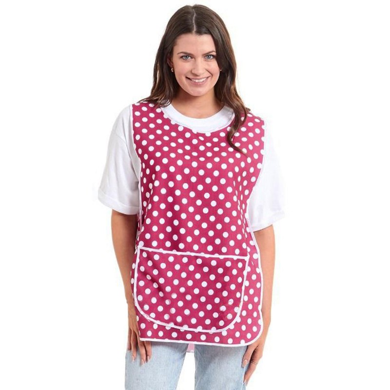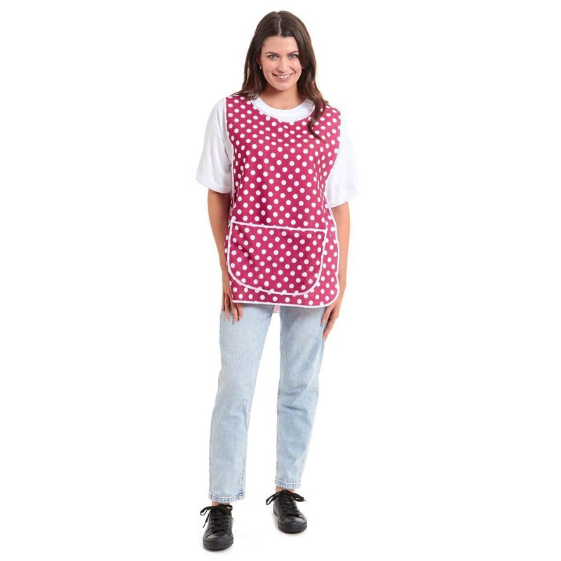 Ladies Polka Dot Design With Piping Tabard Apron Overalls Front Pocket Stylish Tabards for Women Casual Aprons for Women to Use in Home Kitchen Restaurants Coffee Shops UK Made (Wine, L)