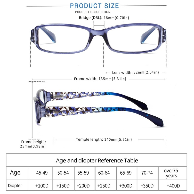 Classic rectangular shape fashion frame reading glasses Suitable for any occasions.Universal size fits most face shapes.