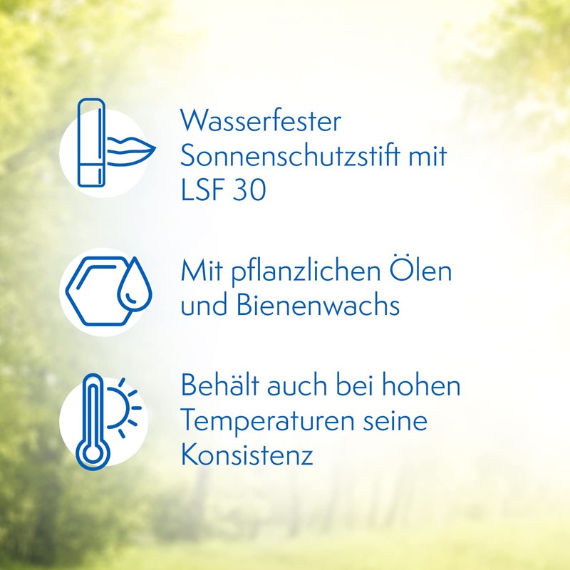 - Sun protection for the lips: the sun protection pen with sun protection factor 30 reliably protects the lips from UV rays and sunburn - with a pleasant vanilla flavour