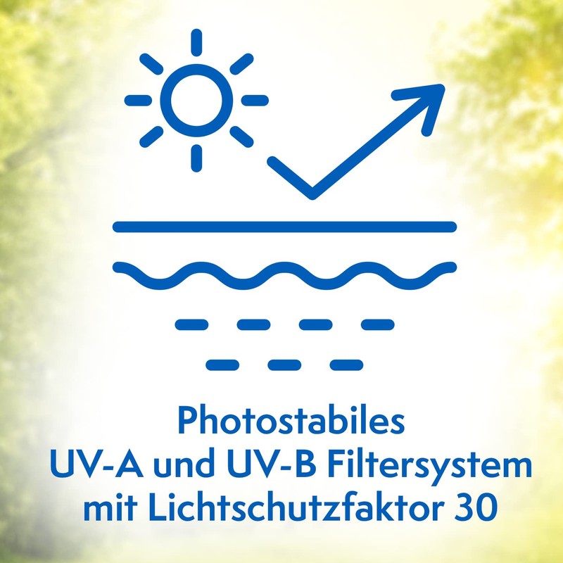 - Reliable, waterproof UV protection: photostable UV-A and UVB filter system - UV-A/UVB protection according to EU recommendation