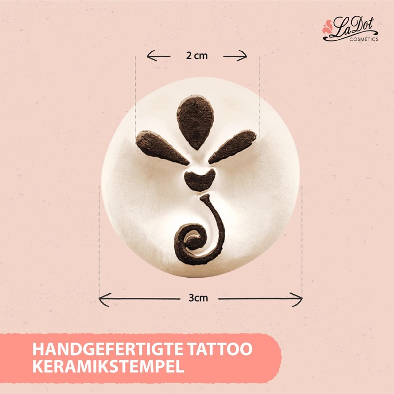 - Temporary – with LaDot you don't need to make a decision for life. The waterproof ink lasts up to 3 days on the skin depending on skin type. Important: suitable for the tattoo stamp you need an ink pad and the body make-up ink.