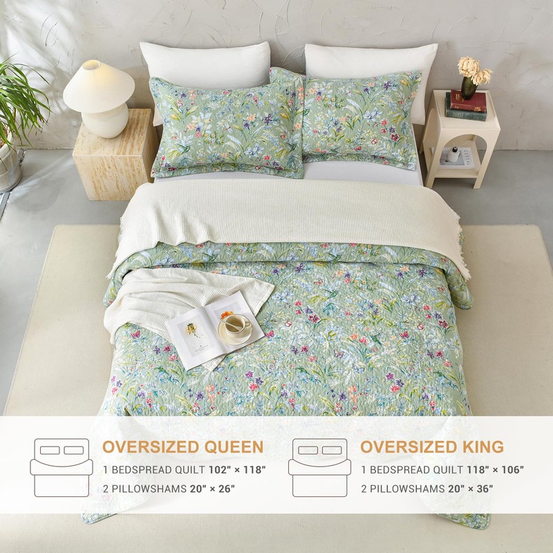 - Provide Dimensions:floral quilts queen size - 3 Piece Set includes 1 Quilt (102in wide x 118 in long), 2 Standard Shams (20 in wide x 26 in long)