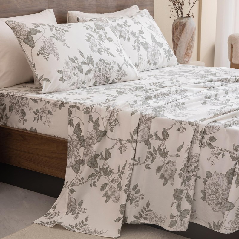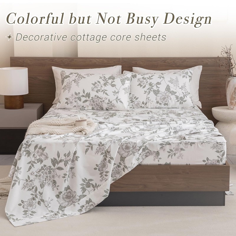- Quality Long Staple Percale Egyptian Cotton - Lady Ann floral printed sheets queen are made of high-quality egyptian cotton, very soft & breathable and durable,fade-resistant.