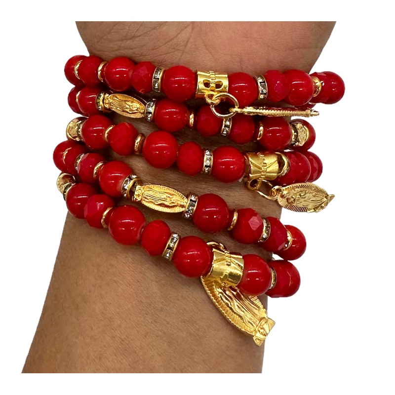 Lady Guadalupe Rosary Bracelet Red - Baptism Favor/Virgen De Guadalupe/Christening Favor/Recuerdos de Bautizo/Quinceanera/Baby Shower - 12 PCS, Acrylic, arcylic