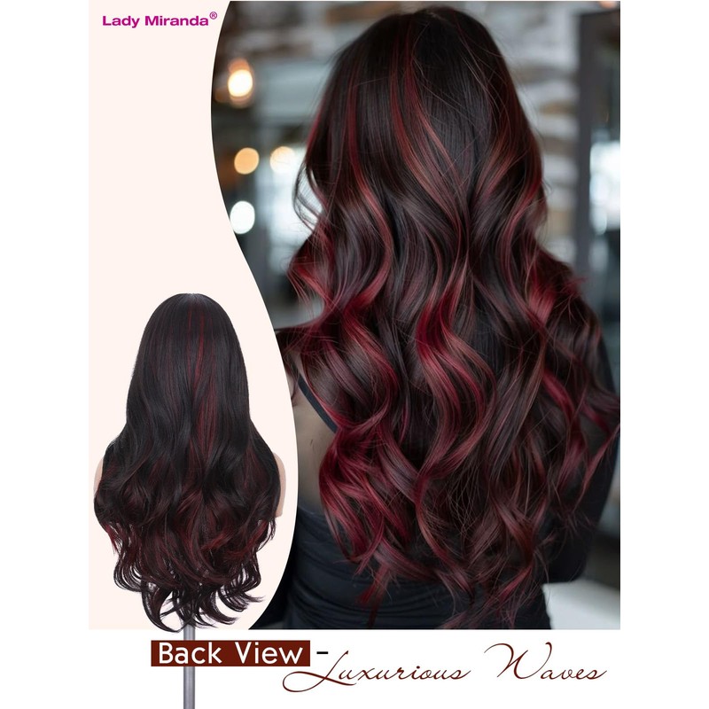 - 【Striking Dual-Tone Design】Elevate your style with bold burgundy highlights cascading through black waves. Featuring natural-looking dark roots and face-framing bangs that create instant dimensional beauty. This body wave texture adds voluminous movement while maintaining manageable styling.