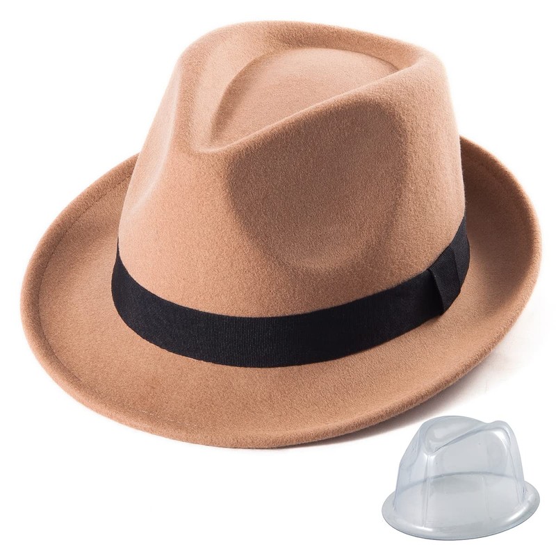 - ★【Diseño clásico, ajustable】Este clásico sombrero trilby está diseñado para adaptarse a tamaños de cabeza entre 22 y 22-7/8 pulgadas, para tamaños 7, 7 1/8 y 7 1/4. Cuenta con una cuerda ajustable dentro de la banda para el sudor, lo que te permite personalizar el ajuste y garantizar una sensación cómoda. Hay un soporte para sombreros dentro del paquete. Puedes mantener los sombreros en perfecta forma con el soporte.