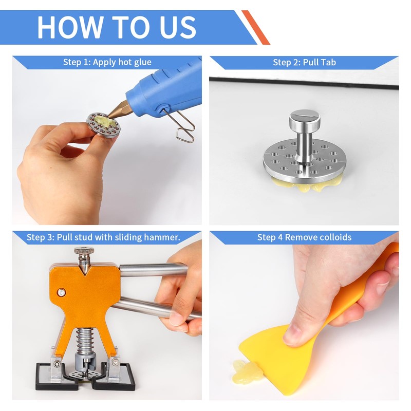 - These puller tabs are used to repair the dent of all kinds of flat metal, such as dents in automobiles and washing machine surfaces. An indispensable accessory for repair stores and home dent repair