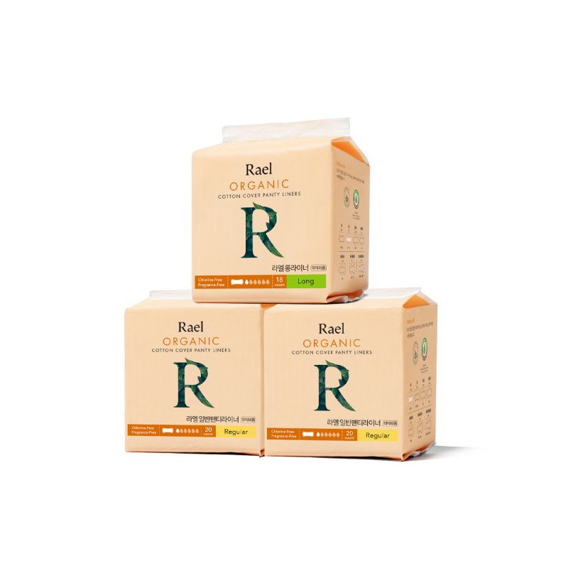 Lael organic cotton cover panty liner 3 packs (regular/long), 1 long liner + 2 regular liners / 라엘 유기농 순면커버 팬티 라이너 3팩 (일반/롱), 롱라이너1+일반라이너2