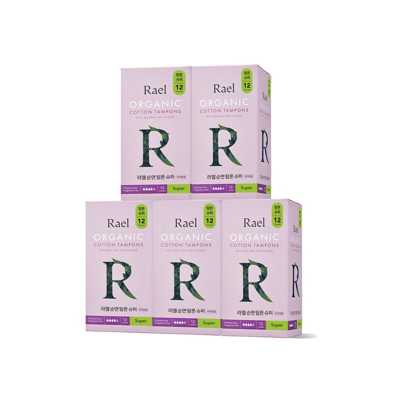 Lael organic cotton tampons 5 packs (regular/super), 4 tampons super + 1 regular / 라엘 유기농 순면 탐폰 5팩(레귤러/슈퍼), 탐폰슈퍼4+레귤러1