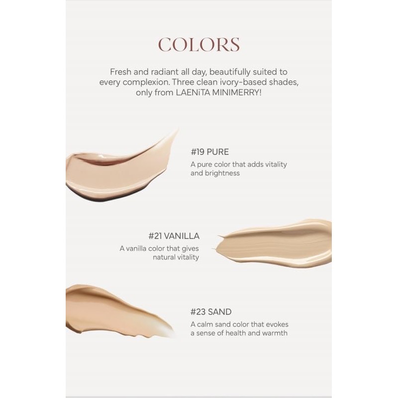 LAENITA MINIMERRY LONG WEAR CUSHION 13 g / 0.45 oz. #19 PURE, #21 VANILLA, #23 SAND, Matte Finish, Skin Perfecting, Foundation pact (21 VANILLA)