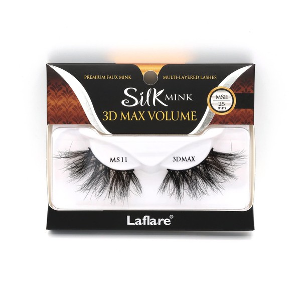 Laflare 3D SILK MINK MAX VOLUME Premium Faux Mink 25mm Extra Long Eyelashes, Cat Eyes, Wispy, Fluffy, Soft as Mink, Multi-layered Dramatic Volume False Lashes (LFMS-MS11)