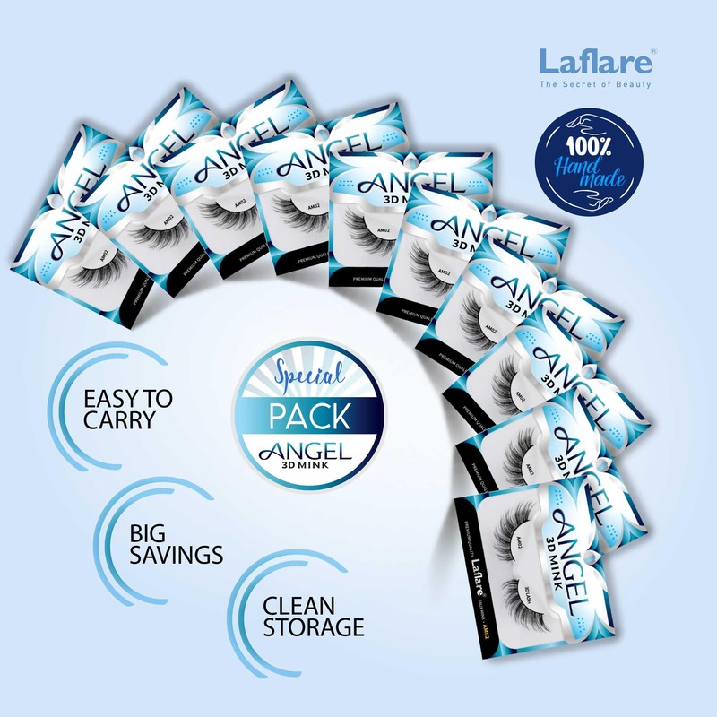 Laflare Laflare® 3D MINK ANGEL Eyelashes,10 Single Packs Luxury Synthetic False Eyelashes,16mm Dramatic Look Maximum Volume. Flare shape, Reusable Faux Lashes (AM02X10P, 10, Count)