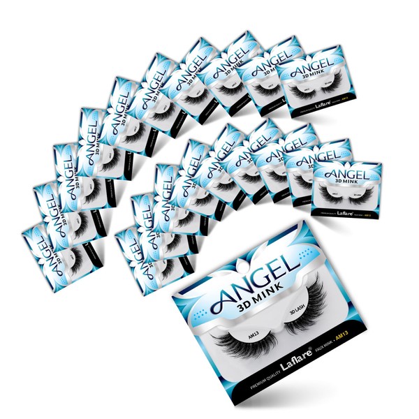 Laflare Laflare® 3D MINK ANGEL Eyelashes,20 Single Packs Luxury Synthetic False Eyelashes,16mm Dramatic Look Maximum Volume. Flare shape, Reusable Faux Lashes (AM13X20P, 20, Count)