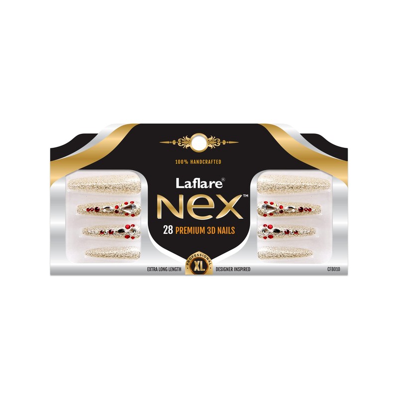 Laflare NEX 3D NAIL, Handcrafted LONG, XLONG Length Acrylic Fake Press On Nails with Nail Glue, Manicure Stick, Mini File (XLong, Coffin, Red Moon)