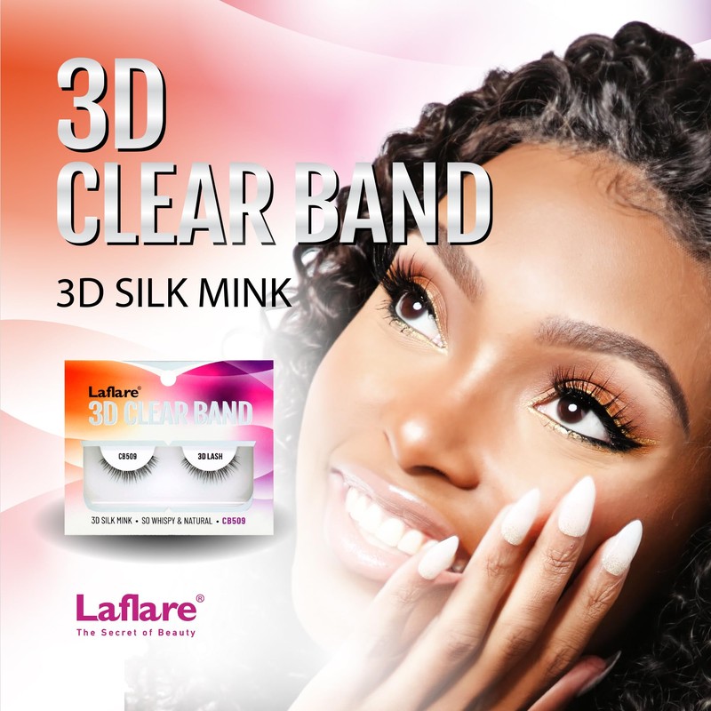 - ❤️𝐒𝐢𝐦𝐮𝐥𝐚𝐭𝐢𝐨𝐧 𝐨𝐟 𝐡𝐮𝐦𝐚𝐧 𝐡𝐚𝐢𝐫 𝐭𝐞𝐱𝐭𝐮𝐫𝐞】Laflare clear band lashes mimic the texture of human hair by using a non-irritating synthetic fiber. The tiny synthetic threads are each tapered at the end to resemble your natural lashes. Your eyes will be highlighted organically by the comfy and realistic layering of the enormous, untidy lash clusters.