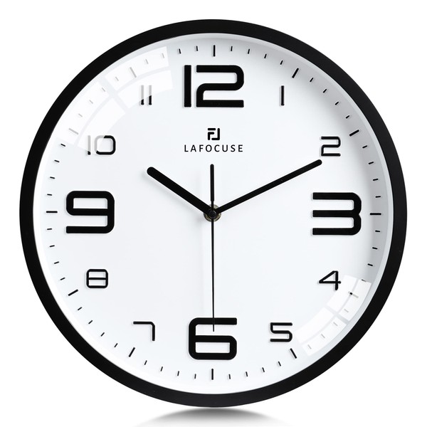 - EASY TO READ This wall clock features one-piece shaped raised numbers and features 4 large black 3D numbers on a simple white dial. The eye-catching numbers make it easy to track time from anywhere in the room.