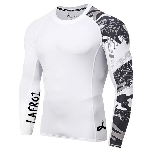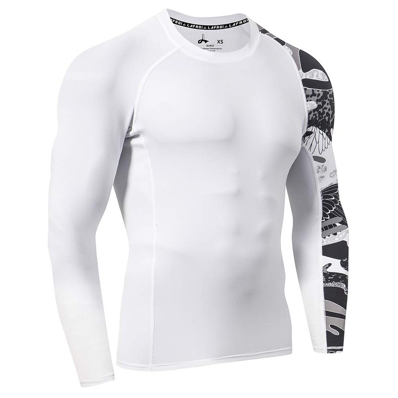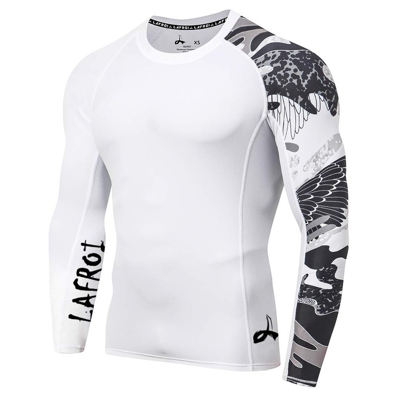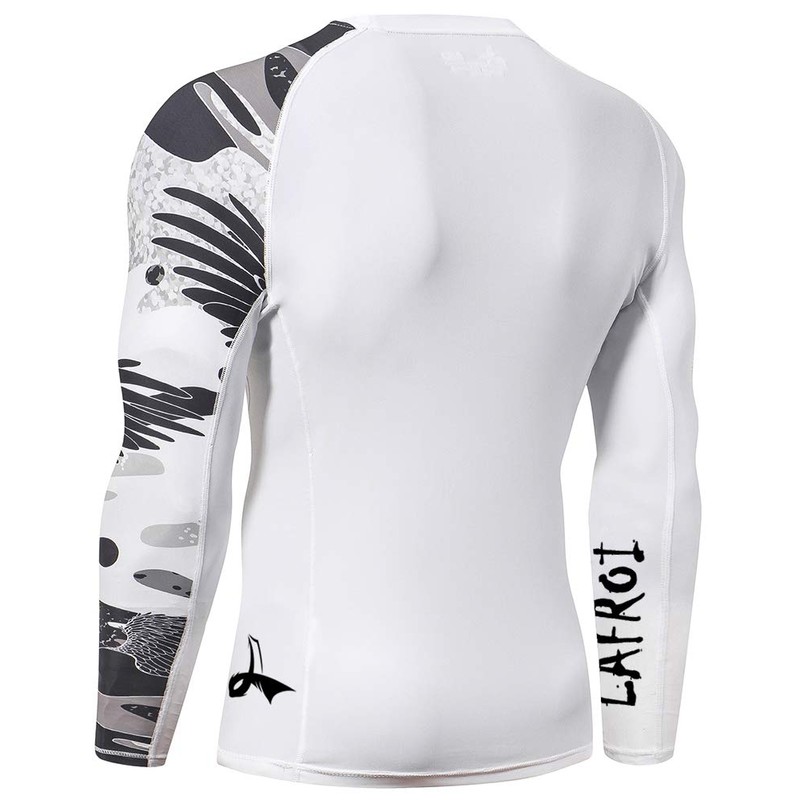 LAFROI CLYYB Men's Long-Sleeved UPF 50+ Compression Shirt Rash Guard, Asymmetric Trace