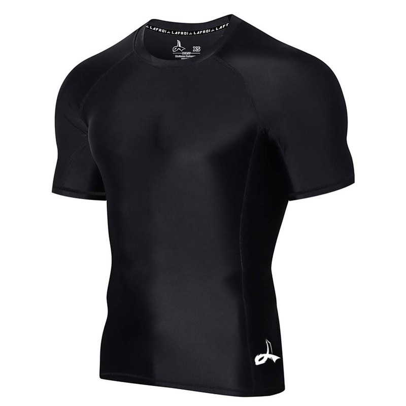 LAFROI Men's Short Sleeve UPF 50+ Baselayer Skins Compression Rash Guard (Sym Black, XL)