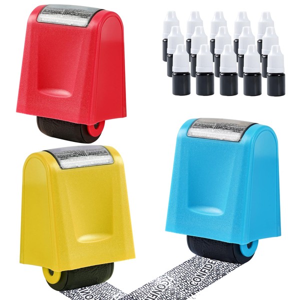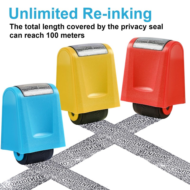 - 【Privacy Guard Special Pack】We are offering a special pack of 3 different colors (red, yellow, blue) of privacy roller stamps, each of which can efficiently cover sensitive information to ensure your privacy and security. What's more, this package comes with 15 ink refills, so you don't have to worry about running out of ink, and you can enjoy the convenience of privacy protection anytime, anywhere.Choose us to make privacy protection easier!
