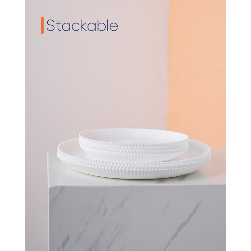 - Easy to Clean: Thanks to the non-porous ultra-hygienic surface, less detergent and energy is needed for cleaning; The dinner plates are dishwasher, microwave and refrigerator safe