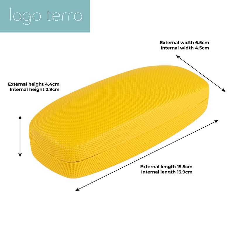 • Ideally sized for most frames, reading glasses and sunglasses. Internal dimensions L 13.9 x W 4.5 x H 2.9 cm