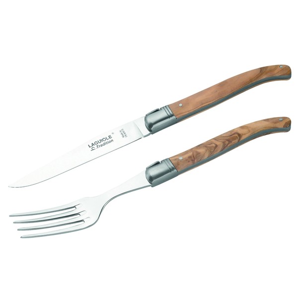 Laguiole Steakmesser mit Gabel, in Holzbox