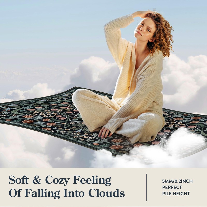 - Elegant Floral Pattern Design: Delicate floral motifs and sinuous vines evoke boho style. This rug brings a distinctive bohemian flair to your space, immersing you in an atmosphere of refined elegance