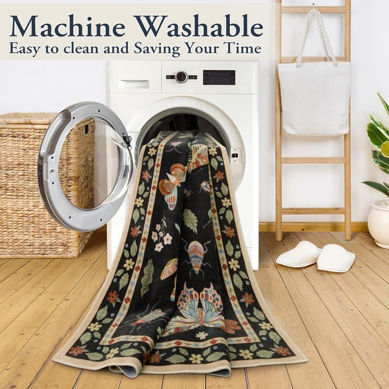 - Beautiful Insect Rug: This room rug combines insect and plant patterns to set the foundation of your space with unique natural elements and add an artistic touch to any room. This rug is ultra-thin, allowing it to be easily placed under furniture